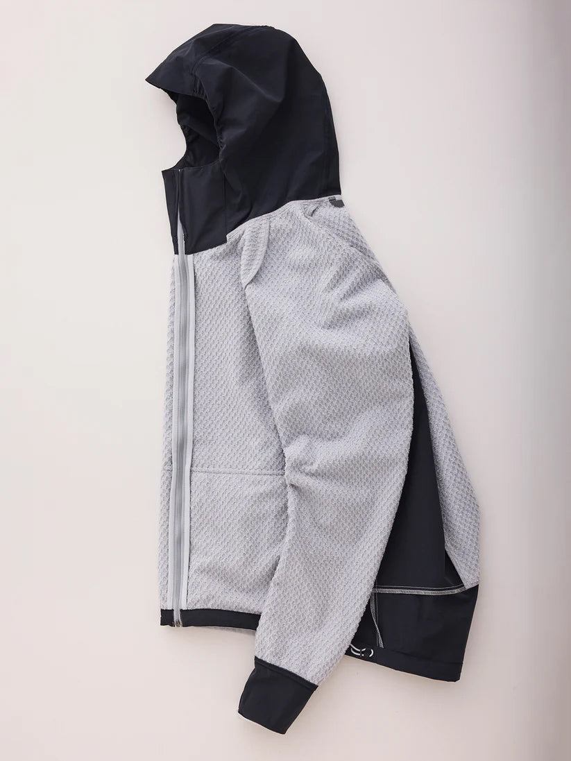 Octa Bonding」を配置。そのほかの部分は通気性とストレッチ性に優れるソフトシェルを使用しています。フードはフィット感を高め、フードの上にヘルメットを被れるようにデザインしています。バックカントリーのミッドレイヤーに留まらず、トレッキングやマウンテンランニングでは単体でも使用可能。動的保温を重視するアクティビティにおいて、通年で幅広く活躍します。