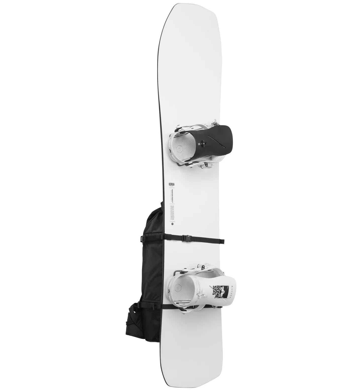 スキーやスプリットボードはA-フレームとバーティカル・スノーボード・キャリーで取り付け可能
